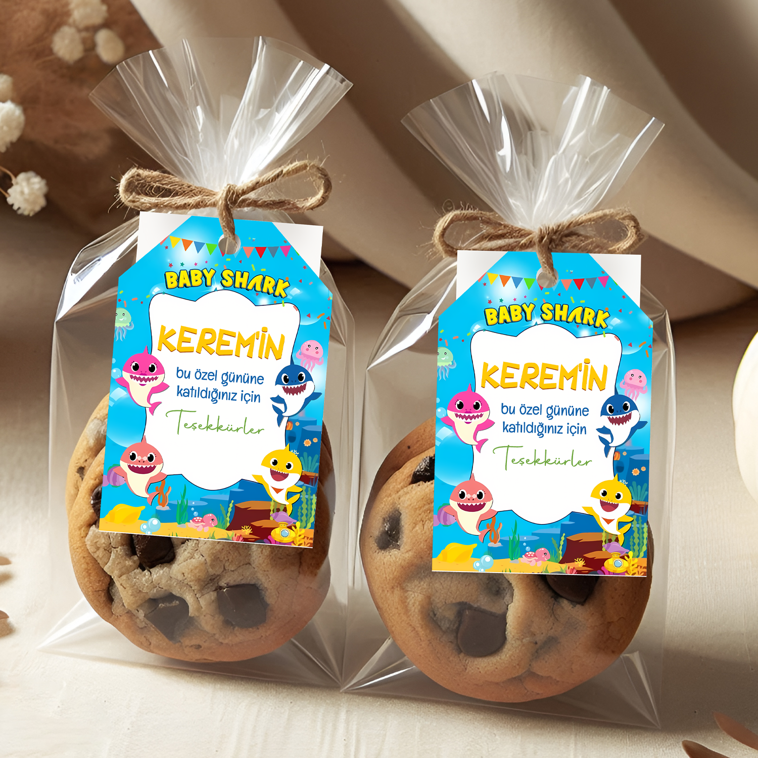 Baby Shark temalı doğum günü partilerine neşeli, renkli ve eğlenceli bir dokunuş katmak isteyenler için özel olarak tasarlanan kişiye özel teşekkür kartlarımız, misafirlerinize tatlı ve unutulmaz bir hatıra sunar.