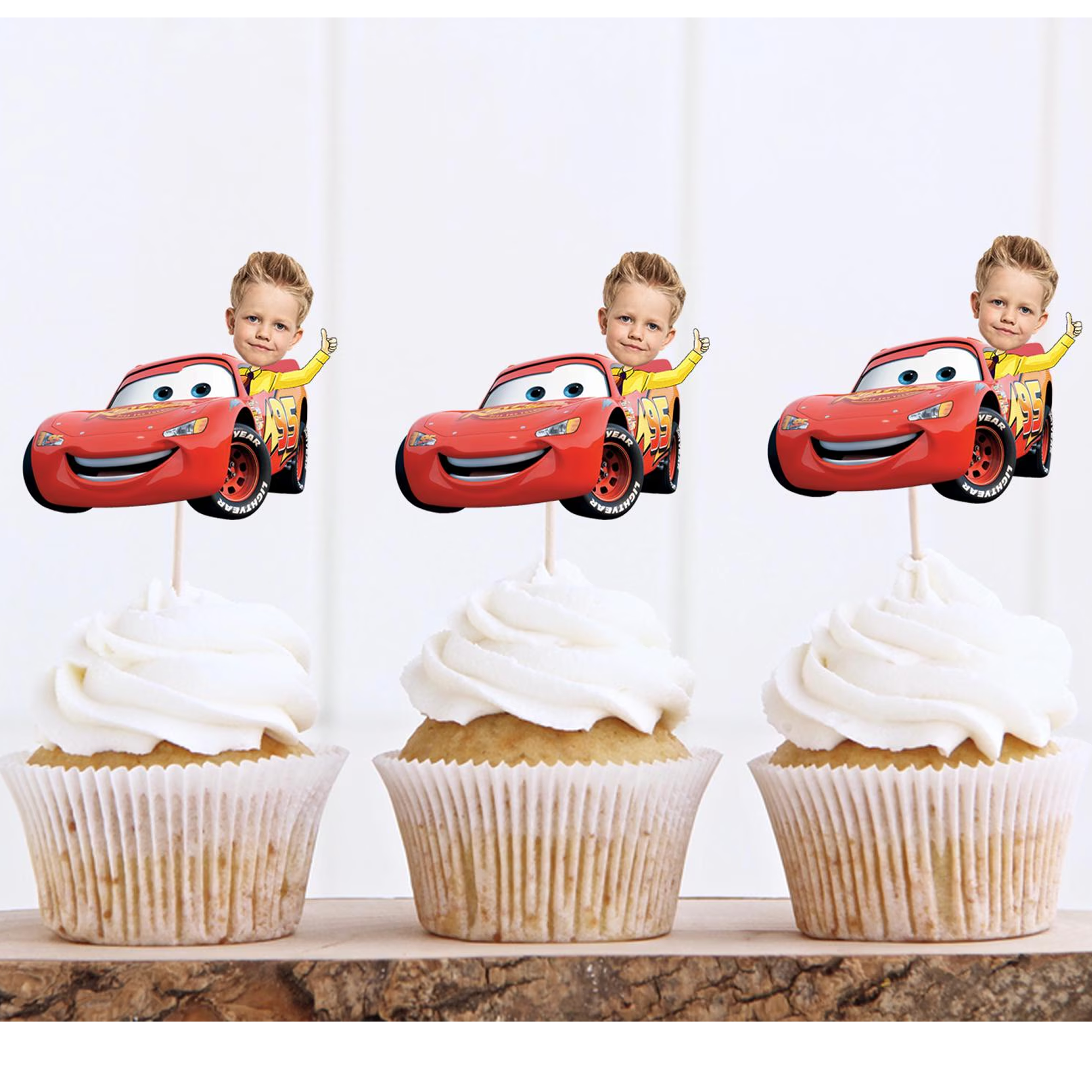 Yarış başlasın! Hız tutkunu minikler için hazırlanan bu McQueen temalı kişiye özel kafa kürdan seti, doğum günü masasına enerjik ve dikkat çekici bir hava katar. Cupcake’lerin üzerinde adeta start çizgisinde bekleyen bir şampiyon gibi durur.