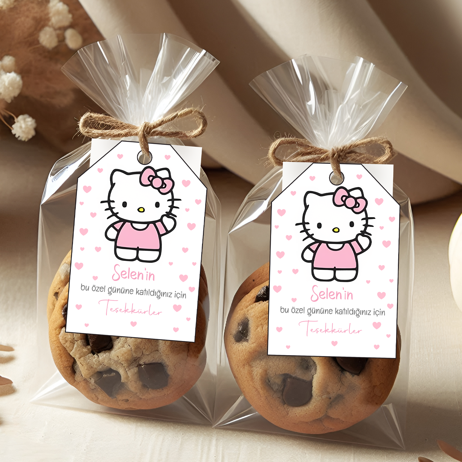 Hello Kitty temalı doğum günü partilerine sevimli, zarif ve tatlı bir dokunuş katmak isteyenler için özel olarak tasarlanan kişiye özel teşekkür kartlarımız, misafirlerinize unutulmaz bir hatıra sunar.