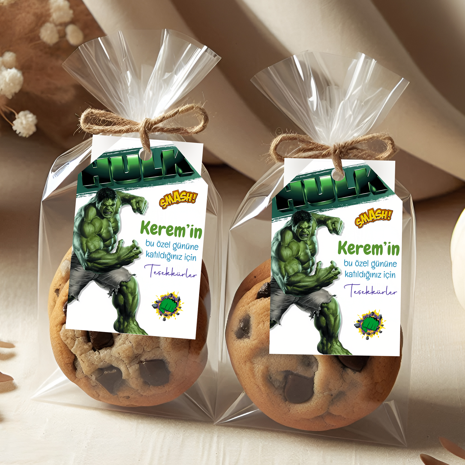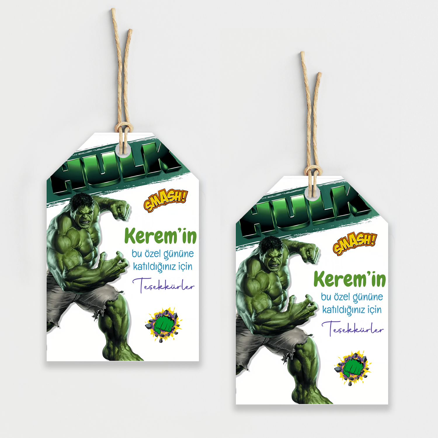 Hulk temalı doğum günü partilerine güçlü, enerjik ve kahramanca bir hava katmak isteyenler için özel olarak tasarlanan kişiye özel teşekkür kartlarımız, misafirlerinize unutulmaz bir hatıra sunar.