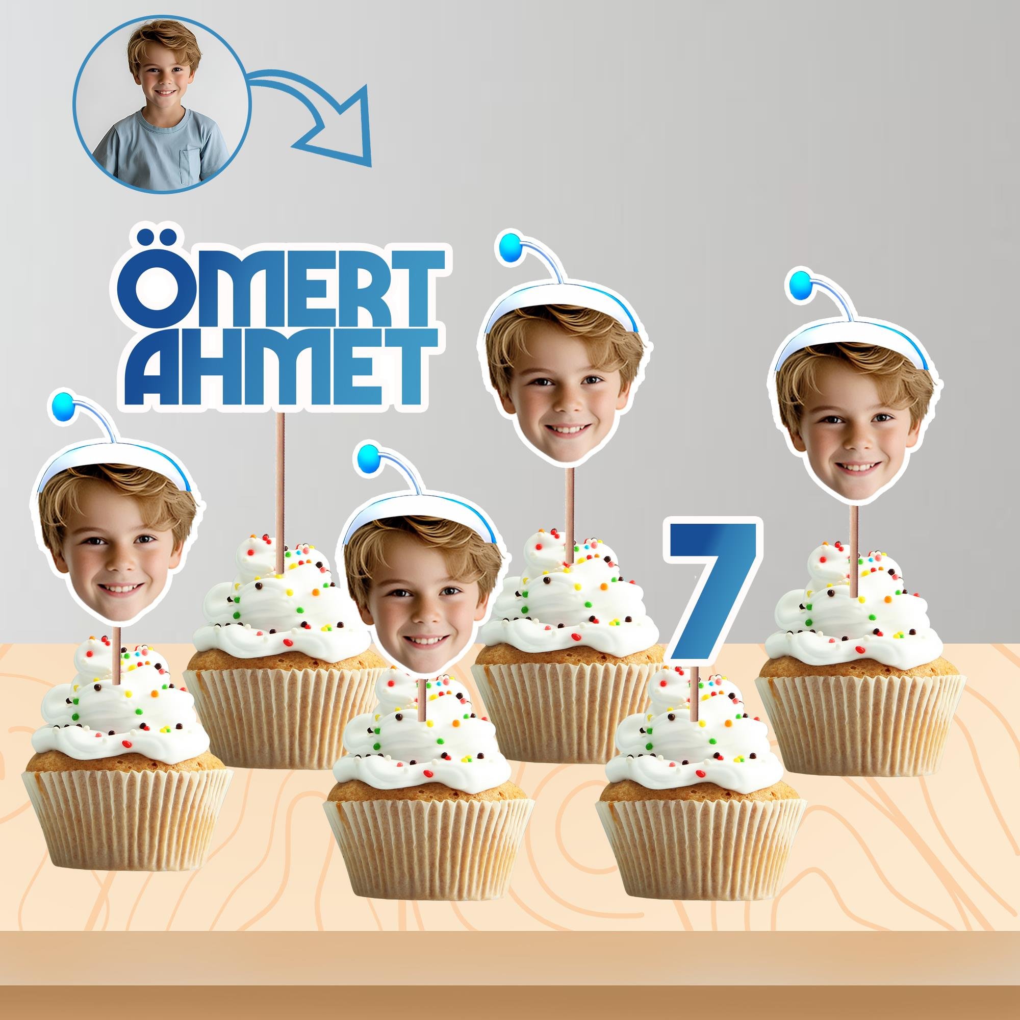 Çocuğunuzun fotoğrafını, süper kahraman temalı maskeli çizim stili ile özel olarak tasarlıyor ve kafa kürdan haline getiriyoruz.