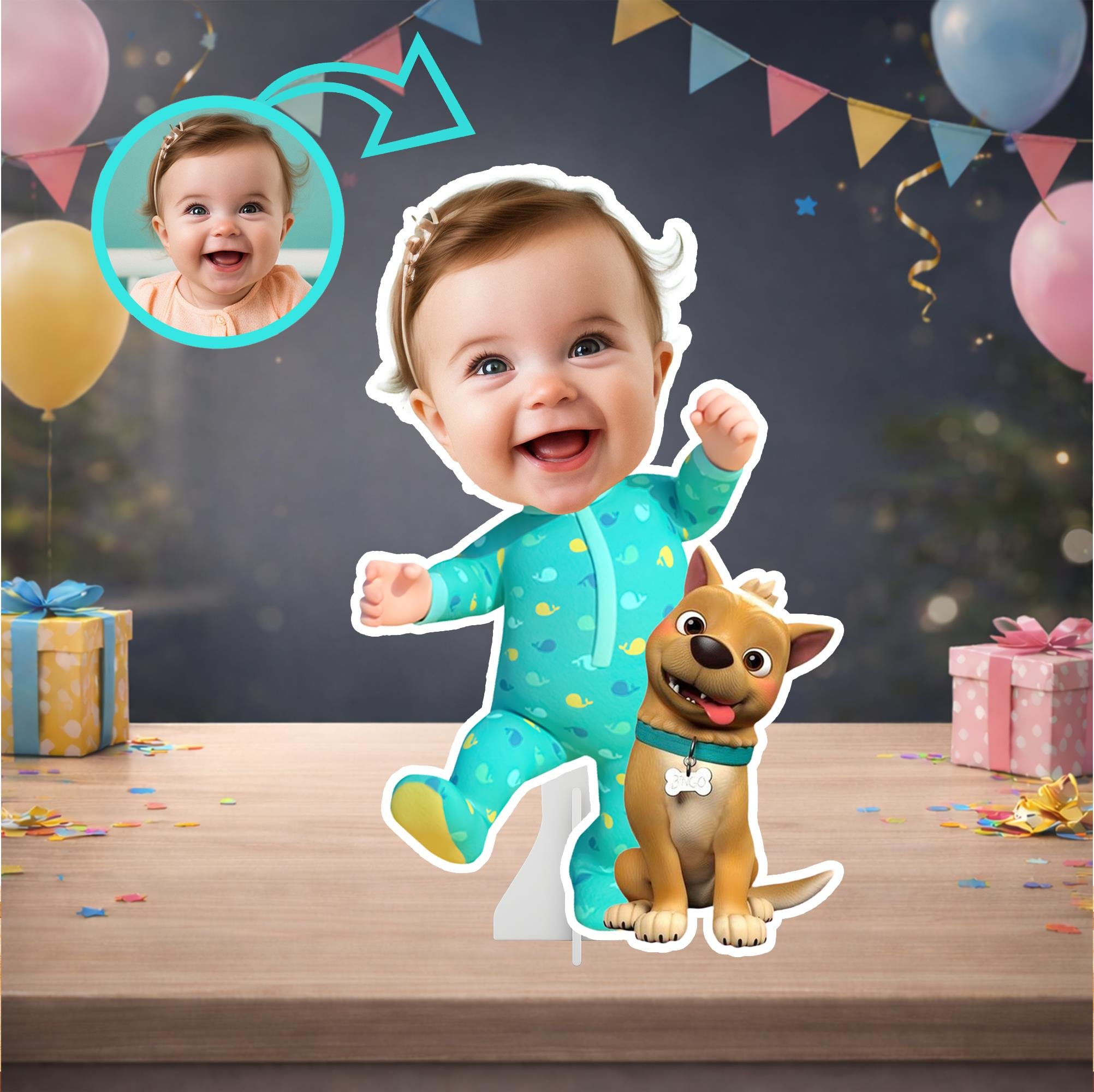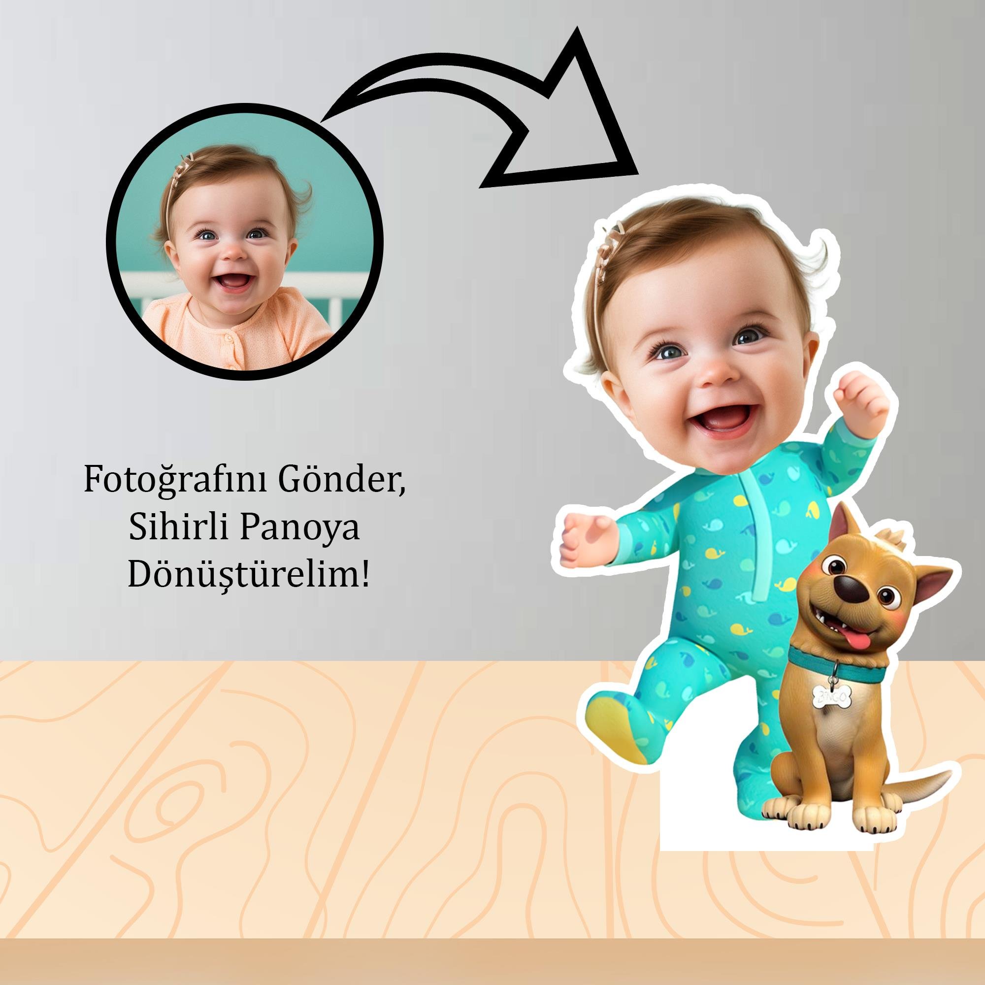 Göndereceğiniz fotoğraf ile çocuğunuzun yüzünü eğlenceli bir süper kahraman tasarımına uyarlıyor, özel olarak hazırladığımız masa panosu haline getiriyoruz.