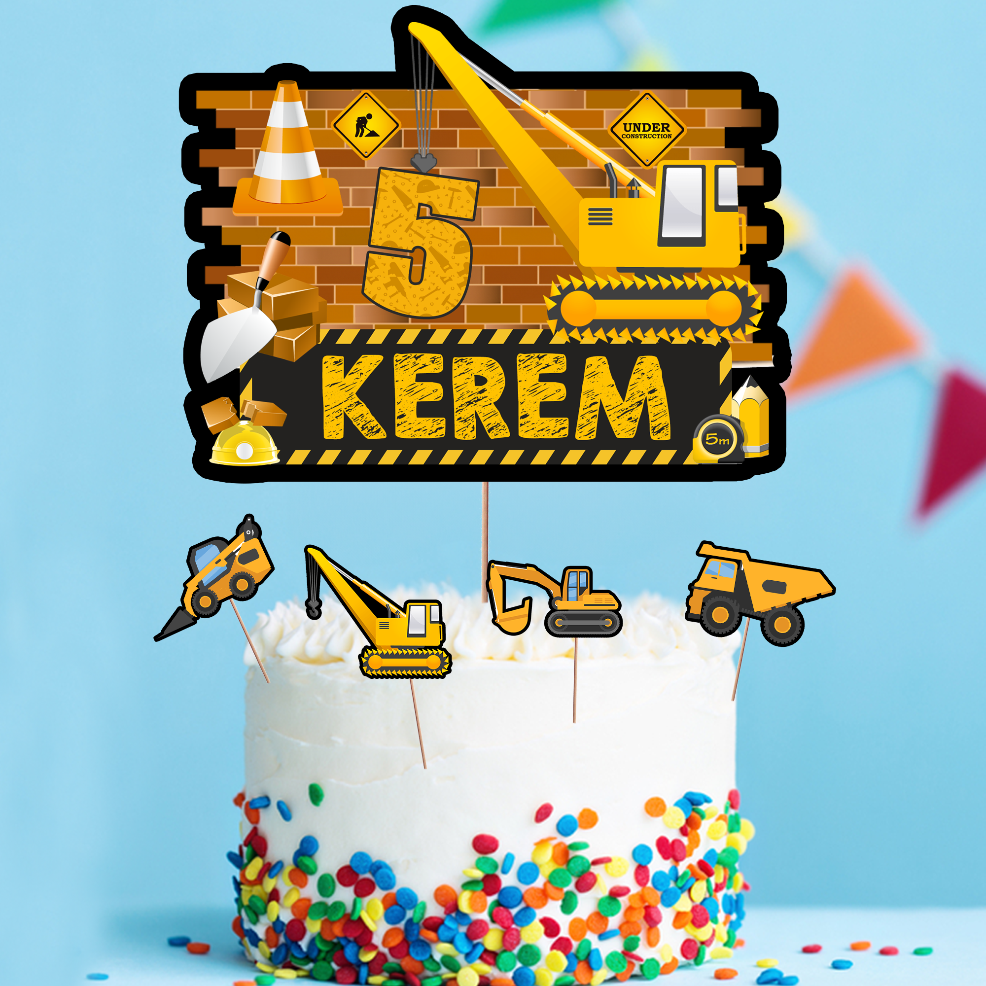 Kişiye Özel İnşaat Temalı Pasta Süsü Seti (İnşaat-cake)