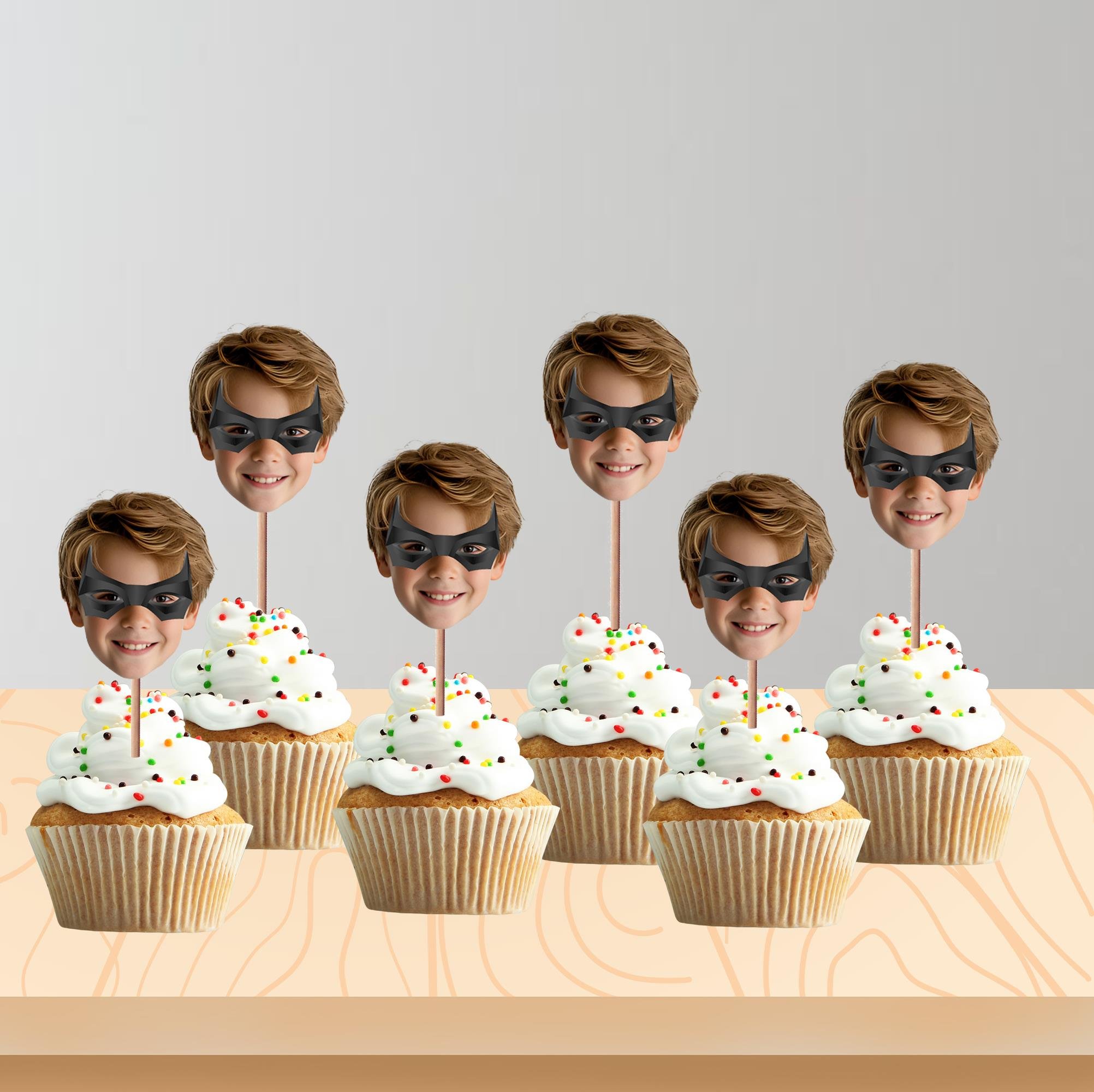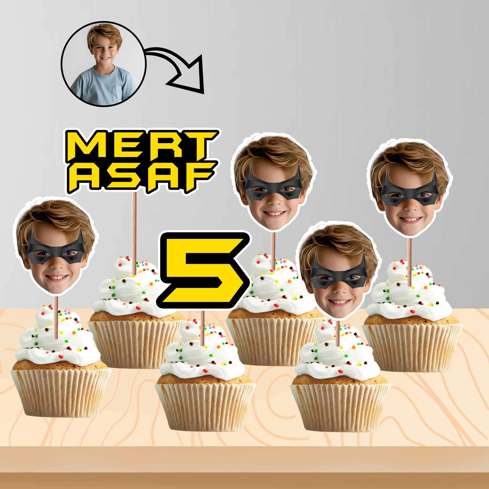 Çocuğunuzun fotoğrafını, süper kahraman temalı maskeli çizim stili ile özel olarak tasarlıyor ve kafa kürdan haline getiriyoruz.
