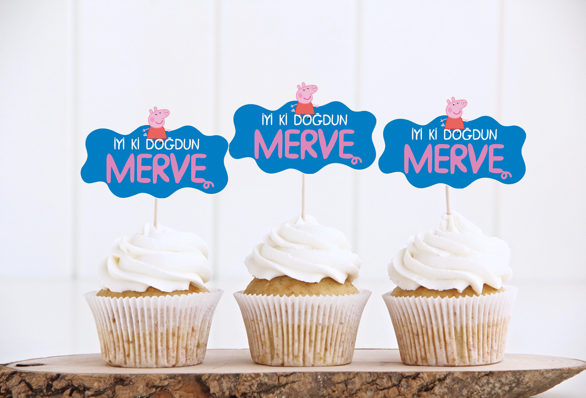 Minik misafirlerinizin yüzünde kocaman bir gülümseme bırakacak sevimli bir detay! Peppa Pig temalı kişiye özel isimli kürdan seti, doğum günü masanızı tamamlayan şirin ama etkili bir dokunuş sunar. Cupcake, pasta dilimi, kanepe ve atıştırmalık sunumlarında konsept bütünlüğü sağlar.